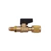 Rubinetto a sfera per gas refrigerante, dotato di raccordo girevole femmina e attacco maschio 1/4" SAE.